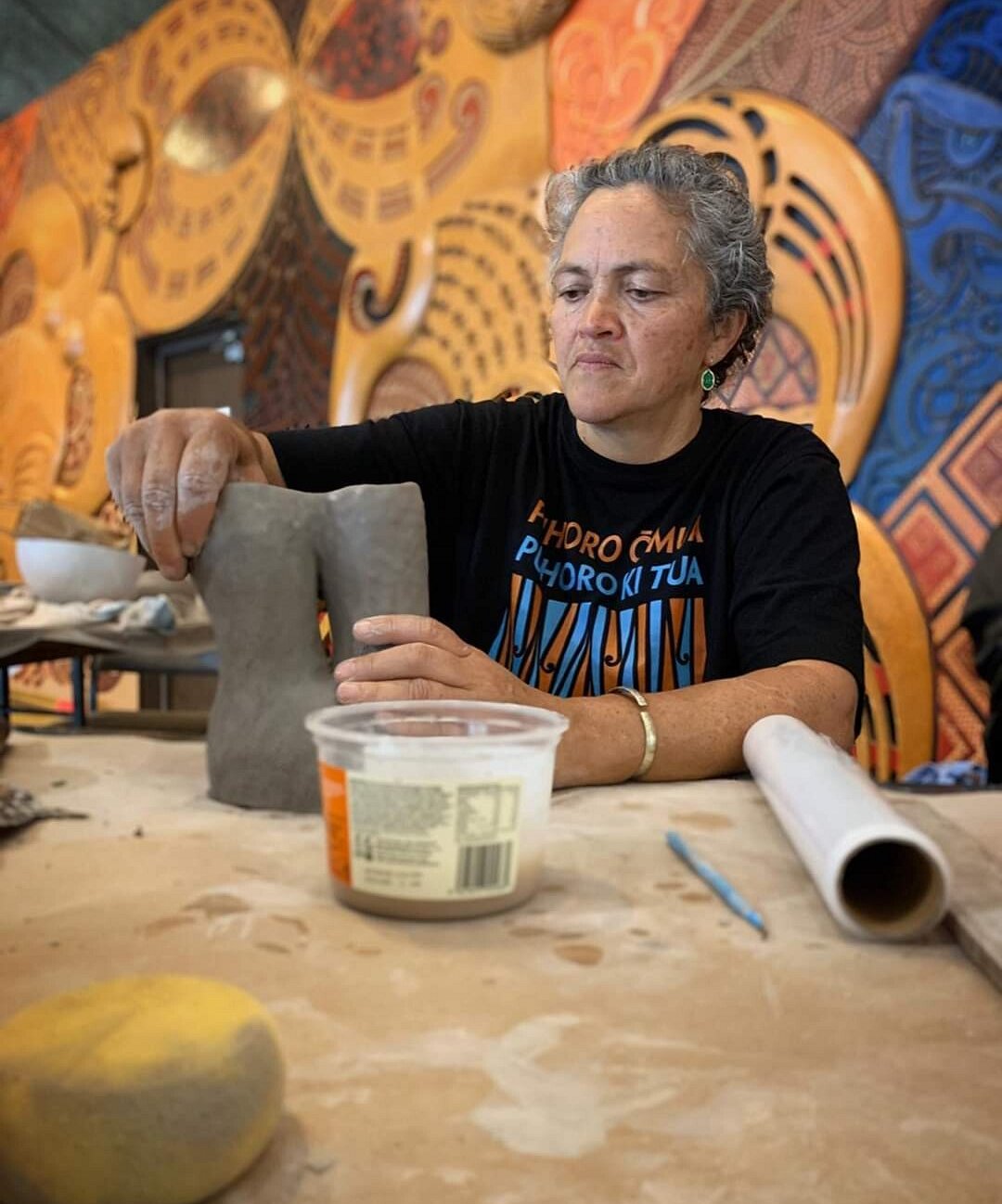 Teacher training lead to an applied arts course that introduced Dorothy to Ngā Kaihanga Uku Māori Clay Workers Collective and Te Ātinga Contemporary Māori Visual Arts committee of Toi Māori Aotearoa. Māori artists’ networks have been significantly important to her creative pursuits, providing opportunities to exhibit regularly and tour overseas. In recent years, she has focused her attention towards hapū art projects and iwi strategies for art and cultural development.