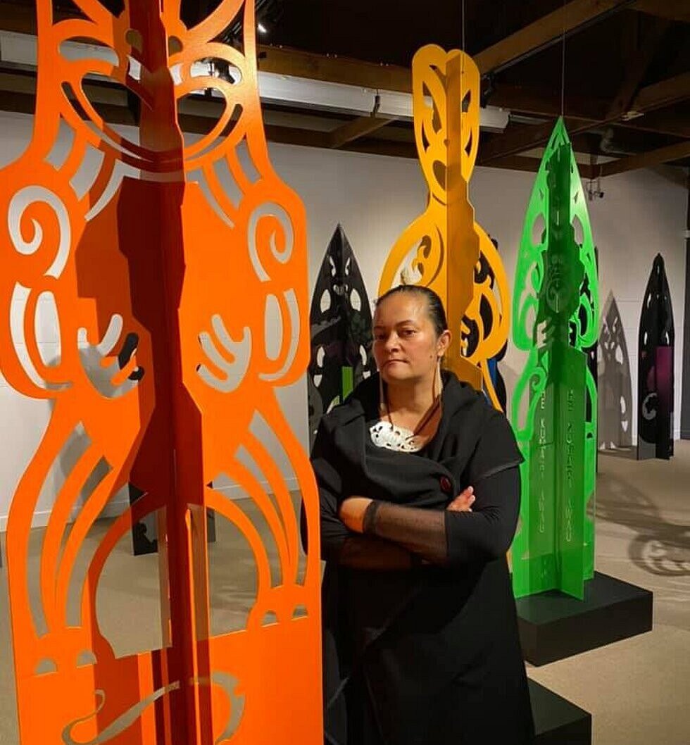 Born in 1970 in Raetihi, New Zealand, she lives and works in Gisborne. A mother of six children and grandmother to four, she is married to artist Henare Tahuri of Tūhoe and Ngāti Kahungunu iwi.